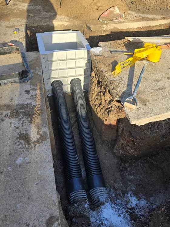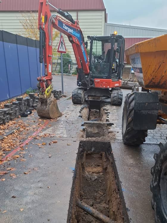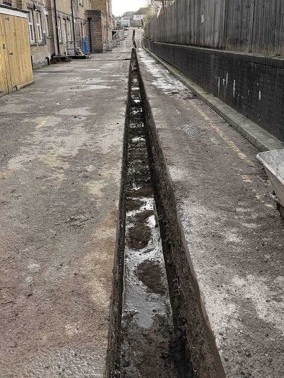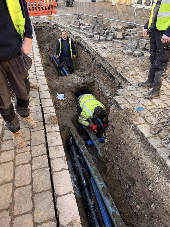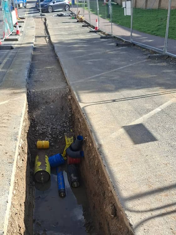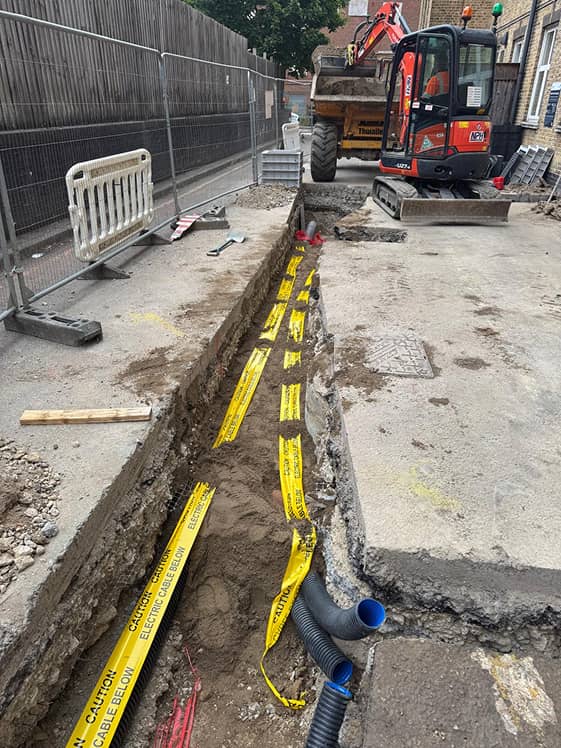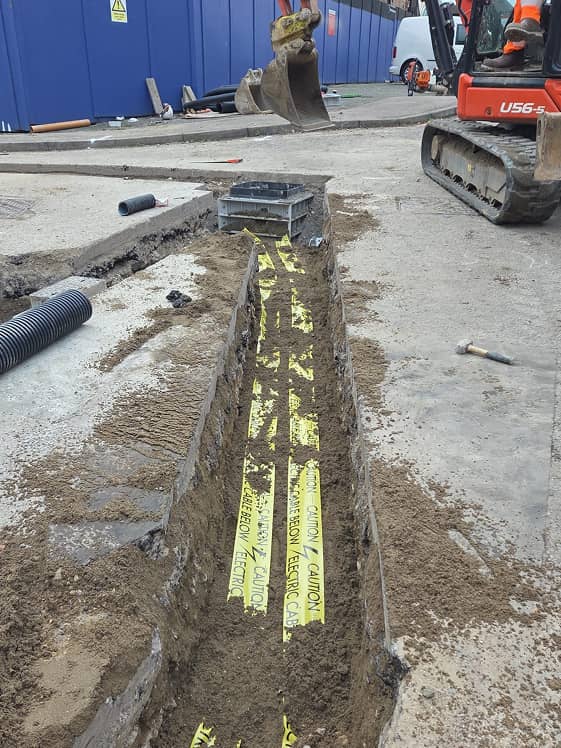 Working alongside T Clarke as the main groundworks contractor, the team carried out trench excavation to facilitate the installation of new utility infrastructure. Additional ducting routes were also installed to future-proof the site for fire alarm systems and communication cabling.